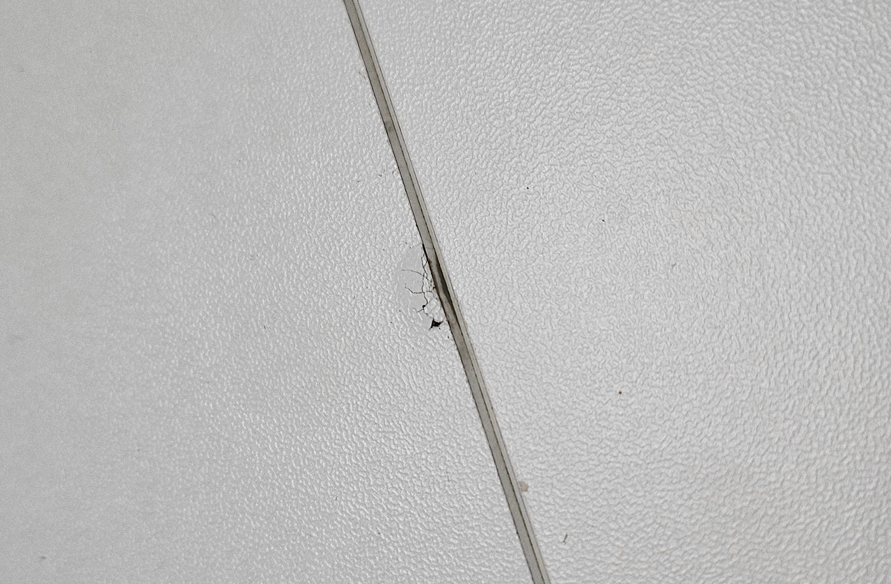 상판은 오염에 약하고, 쉽게 찍히는 재질입니다. 하얀색 바탕은 쉽게 먼지가 드러나고 쉽게 찍힘이 생기는 MDF 소재로 보입니다. 시트지가 쉽게 벗겨질 것 같아요.