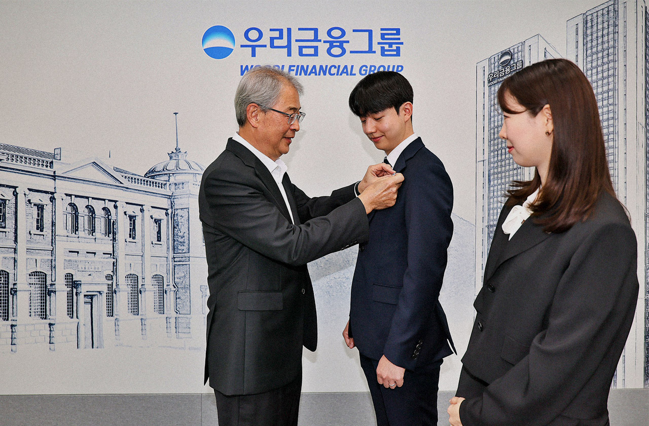 우리금융그룹은 그룹의 모든 계열사 전 임직원이 ‘우리WON 보조 휘장’을 패용한다고 1일 밝혔다. 이번 보조 휘장은 동양생명과 ABL생명의 성공적인 자회사 편입을 기념하고, 은행·증권·보험 등을 아우르는 종합금융그룹으로의 더 큰 도약 의지를 담아 제작됐다. 특히, 디지털 금융 브랜드 ‘WON’의 정체성을 반영해, 디지털 선도와 혁신 이미지를 시각화해 디자인했다. 임종룡 회장은 그룹의 새로운 가족이 된 동양생명과 ABL생명 직원에게 직접 휘장을 달아주고 “이제 우리 앞에 더 넓어진 금융의 길이 열립니다. 은행을 넘어 증권 그리고 보험을 더해, 더 크고 든든한 금융의 길, 디지털로 더 빠르게 연결되는 길, 진정한 종합금융의 미래로 나아가고 있습니다. 변화를 두려워하지 않는 우리, 새로운 도전을 기꺼이 맞이할 우리, 지금 더 큰 금융을 향해 나아가 봅시다”라며 그룹사 전 임직원에게 메시지를 전달했다.