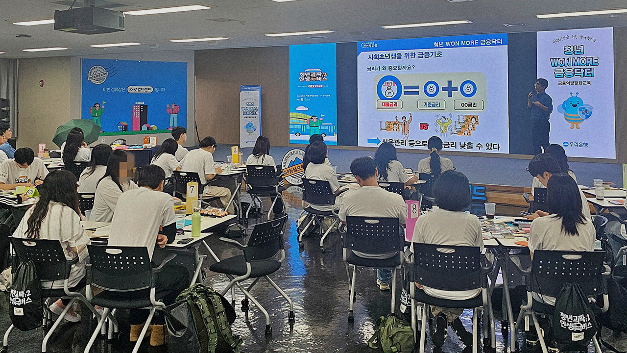 우리은행은 지난 7월 7일 서울경제진흥원 청년진로탐색 프로그램인 ‘청년괴짜 인생버스 시즌2’에 참여하는 청년들에게 사회생활에 꼭 필요한 금융 지식을 전달하는 ‘청년 WON MORE 금융닥터’를 실시했다. 그동안 우리은행은 단국대, 동국대, 한국외국어대 등 대학생 청년을 대상으로 교육을 진행해 왔으며, 대학생 외에도 다양한 청년들의 금융교육 사각지대를 해소하고 실질적 금융역량을 높이기 위해 대상을 확대했다. 마포 서울창업허브에서 진행된 이번 금융교육은 우리은행 직원이 직접 연사로 나섰다. 청년들이 필요로 하는 금융 주제를 사전 청취해 △사회초년생 금융기초(금리, 신용관리 방법, 금융습관, 포트폴리오 등) △대출 첫걸음(대출 종류, 한도, 상환방법 등) △청년을 위한 금융제도 등 다양한 금융지식을 다루고 질의응답 시간도 가져 금융교육 효과를 극대화했다.