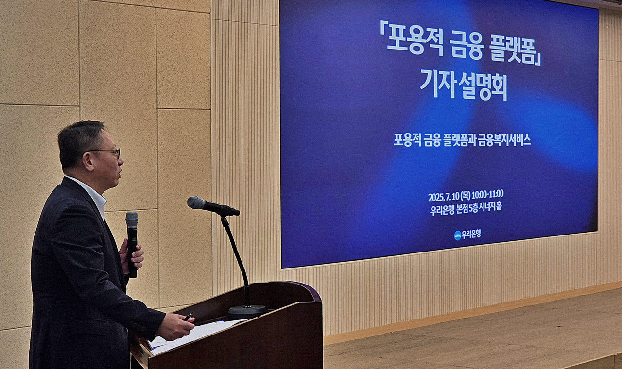 우리은행은 지난 7월 10일 서울 중구 본점에서 ‘포용적 금융 플랫폼’에 관한 기자설명회를 개최하고 중소기업과 소상공인과의 동반성장에 대한 전략과 의지를 밝혔다. 이날 설명회에서 우리은행은 자사의 기업금융 플랫폼인 △원비즈플라자 △원비즈e-MP △우리SAFE정산 등을 소개하고, 이러한 서비스를 통해 구매기업과 협력업체 모두에게 안정적인 공급망 관리와 금융지원 등 토탈솔루션을 제공하고 있다고 설명했다. 인사말에 나선 정진완 은행장은 “중소기업들은 공급망·결제망·금융지원 등 핵심 인프라를 자체 구축하기가 쉽지 않아 우리은행이 금융권 최초로 공급망 금융 플랫폼인 원비즈플라자 서비스를 제공하게 됐다”며, “이러한 플랫폼 안에서 대기업과 중소기업, 제조업과 서비스업, 내수기업과 수출기업 등이 모두 상생함으로써 포용성장을 이뤄낼 수 있을 것”이라고 전했다.