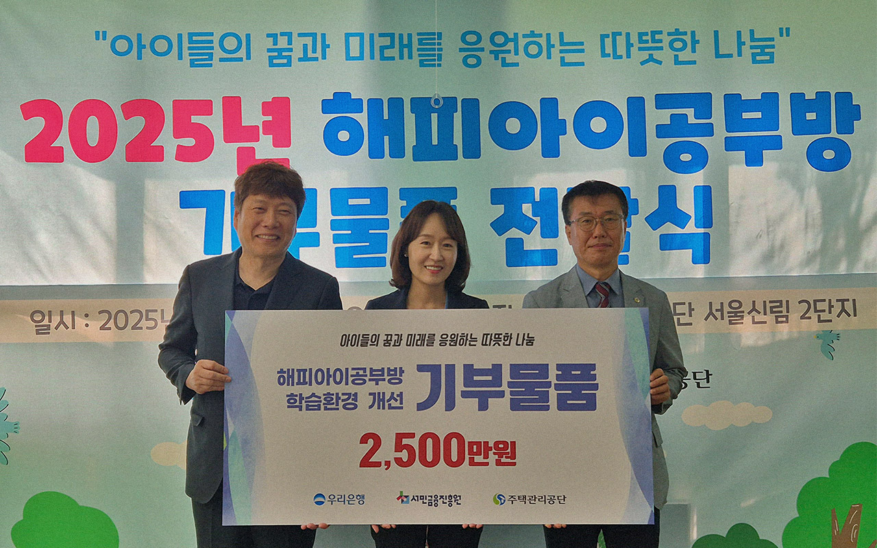 우리은행이 서민금융진흥원, 주택관리공단과 함께 저소득·맞벌이가정 아동을 위한 ‘해피아이 공부방’ 지원사업에 참여한다고 지난 7월 23일 밝혔다. ‘해피아이 공부방’은 방학 기간 동안 생기는 국민임대주택 거주 아동의 돌봄공백 해소를 위해 주택관리공단이 운영하는 자체 돌봄시설이다. 전국 임대주택 12개 단지에서 연간 약 250명의 아동이 이용하고 있다. 우리은행은 이번 사업을 통해 오래된 책상과 걸상을 교체하고, 빔프로젝터 등 다양한 학습용 기자재를 지원해 아동의 정서적 안정과 쾌적한 교육환경 조성에 기여할 계획이다. 우리은행 ESG상생금융부 차재범 부부장은 “우리은행은 서금원과 함께 경제적 어려움을 겪는 다양한 취약계층을 지속적으로 지원하고 있다”며, “앞으로도 저소득·맞벌이가정 등 사회적 약자를 돕는 활동을 통해 금융의 사회적 책임을 다하겠다”라고 말했다.