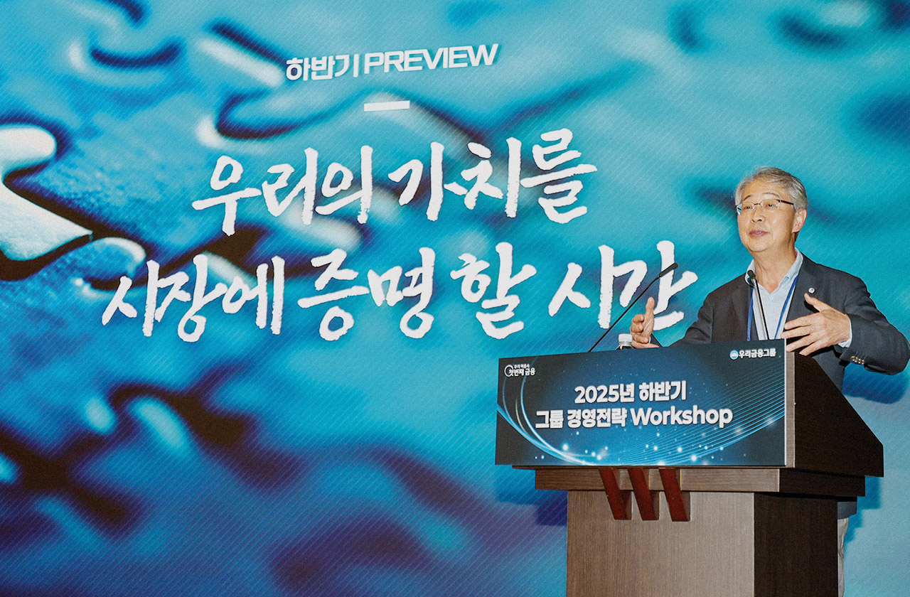 우리금융그룹은 지난 7월 18일 서울 회현동 본사에서 ‘2025년 하반기 그룹 경영전략 워크숍’을 개최하고, 종합금융그룹 체제 완성에 따른 그룹 시너지 계획과 전사적 AX(AI Transformation) 추진을 기반으로한 하반기 전략 방향을 공유했다. 동양생명과 ABL생명의 편입 이후 처음 열린 그룹 경영전략 행사로, 은행을 포함한 보험, 카드, 증권 등 전 계열사 임직원 약 400여 명이 참석해 그룹의 새로운 도약에 대한 결의를 다졌다. 이날 행사는 △AI 특별강연 △상반기 그룹 우수직원 시상 △하반기 그룹 주요 아젠다 발표 △CEO 메시지 순으로 진행됐다. 특히 이번 워크숍은 우리금융그룹이 AX 원년을 선포하며 서울대 이재진 교수의 AI 특별강연, 지주 AX 전략 발표 및 실무자 소개 등을 더해 AX 추진력을 속도감있게 결집하는 자리로서 의미를 더했다.