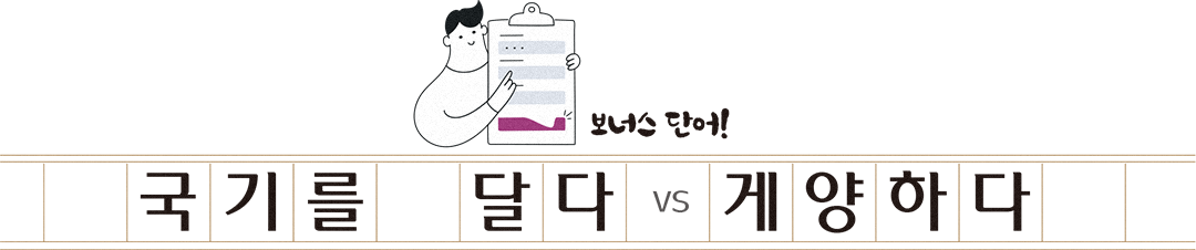 우리나라에는 다양한 국경일이 있습니다. 우리는 국경일이면 태극기를 다는데요. 이때마다 보통 ‘국기를 게양하다’라는 표현을 많이 썼습니다. 하지만 ‘게양(揭揚)하다’가 일본어투 표현이라는 사실을 알고 계셨나요? 그러니 이 표현은 우리말로 ‘국기를 달다’라고 쓰는 것이 어떨까요? 2025년부터 달력에 ‘태극기 다는 날’이 처음으로 표기되었다고 해요. 이제부터라도 늦지 않았으니 ‘국경일=태극기 다는 날’로 알아두자고요!