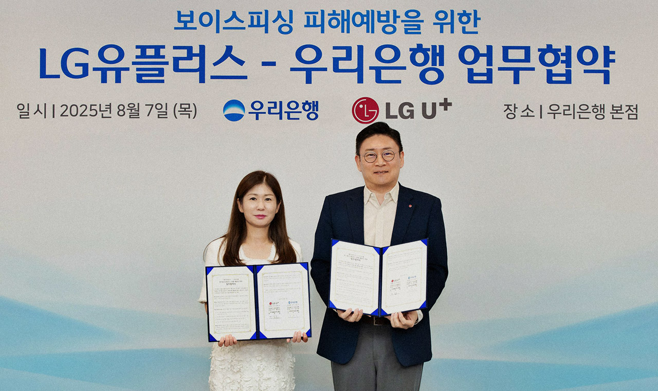 우리은행은 지난 8월 8일 서울 중구 우리은행 본점에서 LG유플러스와 ‘보이스피싱 피해예방을 위한 업무협약(MOU)’을 체결했다고 밝혔다. 이번 협약은 최근 급증하고 있는 보이스피싱 범죄가 점차 지능화되고 수법이 다양해지는 가운데, 금융과 통신 분야 간 협력을 통해 선제적 피해예방 체계를 구축하고, 금융소비자 자산 보호 역량을 강화하기 위해 추진됐다. 협약식에는 우리은행 오지영 금융소비자보호그룹장과 LG유플러스 최윤호 AI Agent 추진그룹장을 비롯해 양사 주요 관계자들이 참석했다. 양사는 이번 협약을 계기로 △보이스피싱 수법 공유 및 협업사항 발굴·추진 △피해 예방을 위한 지원 체계 마련 △실무 협의체 운영을 통한 세부 실행계획 수립 등 보이스피싱 피해 예방을 위한 협력을 강화하기로 했다.