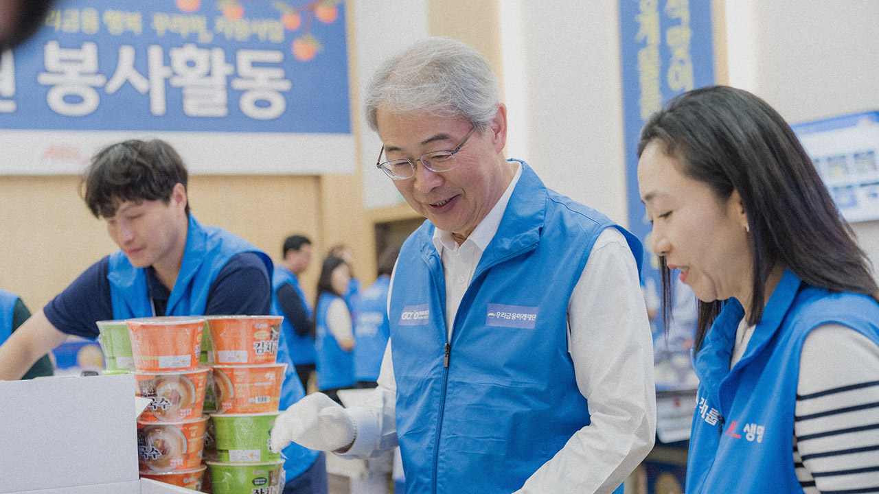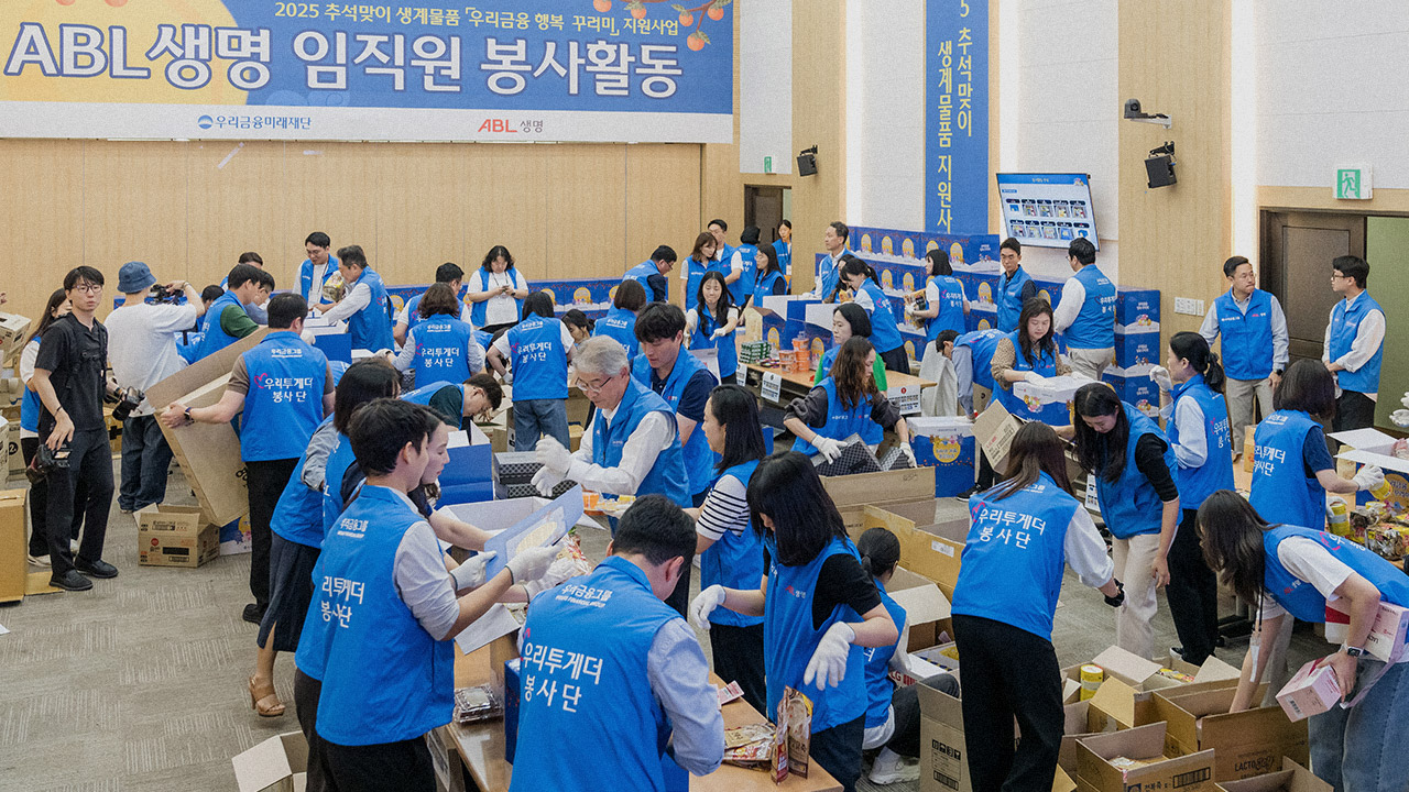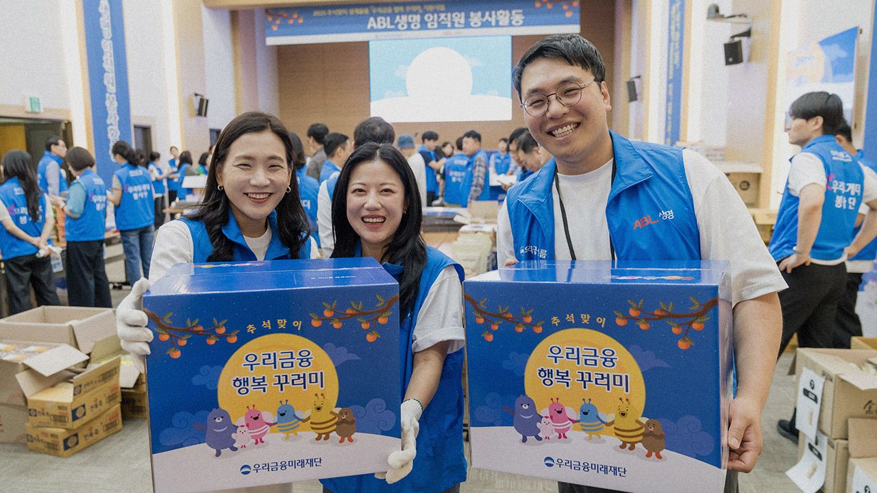 새로운 동행 길에 오른 우리금융그룹의 우리금융미래재단과 ABL생명이 특별한 행사를 함께했다. 지난 9월 23일, 추석을 앞두고 취약계층에 전달할 선물 패키징 봉사활동 ‘우리금융 행복 꾸러미’에 나선 것이다. 우리금융미래재단은 발달장애인, 미래세대, 우리히어로(군인, 경찰, 소방 인력), 취약 계층 4개 분야에 걸쳐 20개 지원사업을 추진하는 중이다. 그 일환으로 명절맞이 취약계층 생계물품 지원활동도 펼치고 있다. 2002년부터 설과 추석 시즌에 생계용품을 전달하는 사회공헌활동을 지속적으로 전개한 것. 오늘은 ABL생명 임직원과 18세 미만 손자녀를 양육하는 기초생활수급 조손가정 7,000가구를 위한 물품을 포장할 참이다.