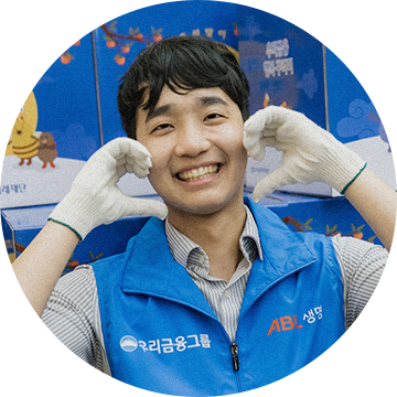 입사 후 꾸준히 봉사활동에 참여하며 나눔의 가치를 체감하곤 했습니다. 기존에는 빨간색 유니폼을 착용했다면, 오늘은 우리금융그룹의 일원으로서 파란색 유니폼을 입었는데요. 소속감과 자부심을 느낄 수 있었습니다. 우리의 작은 관심과 노력이 모여서 누군가에게 큰 힘이 될 수 있잖아요. 앞으로도 회사가 선한 영향력을 선사할 때 보탬이 되고 싶습니다!