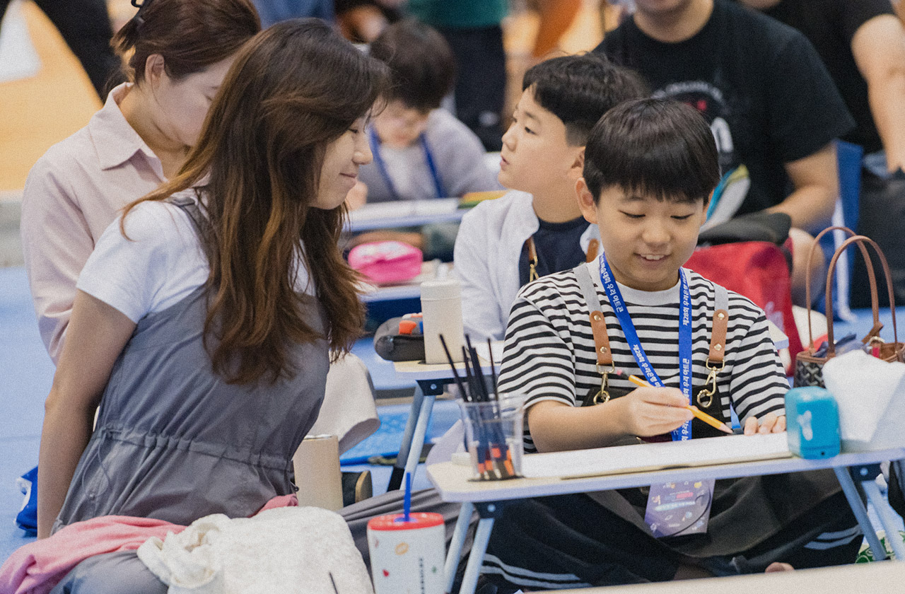 아이가 두 살 때부터 그림 그리는 걸 좋아했어요. 집에서만 열심히 그리다가 미술대회에 참가한 건 이번이 처음인데요. 아이가 미술대회 나간다고 하니까 전날부터 설레고, 기대를 많이 하더라고요. 그래서인지 잠을 설쳤습니다. 하하. 조금 늦었지만, 최선을 다해서 그리고, 즐겁게 즐기다 갈게요! 파이팅!