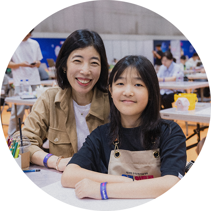 올해 처음으로 우리 아트콘에 참여했는데요. 아이가 그림 그리기를 좋아해서 우연히 미술학원에서 안내를 보고 제출하게 되었는데, 본선까지 오게 될 줄은 몰랐어요. 그런데 막상 대회에 참가하니 긴장이 많이 되나 보더라고요. 그래서 그림 그리기 전에 부대 프로그램을 한번 돌고 왔는데, 다행히 긴장이 많이 풀린 것 같더라고요. 아이와 함께 좋은 추억 만들고 갈게요!