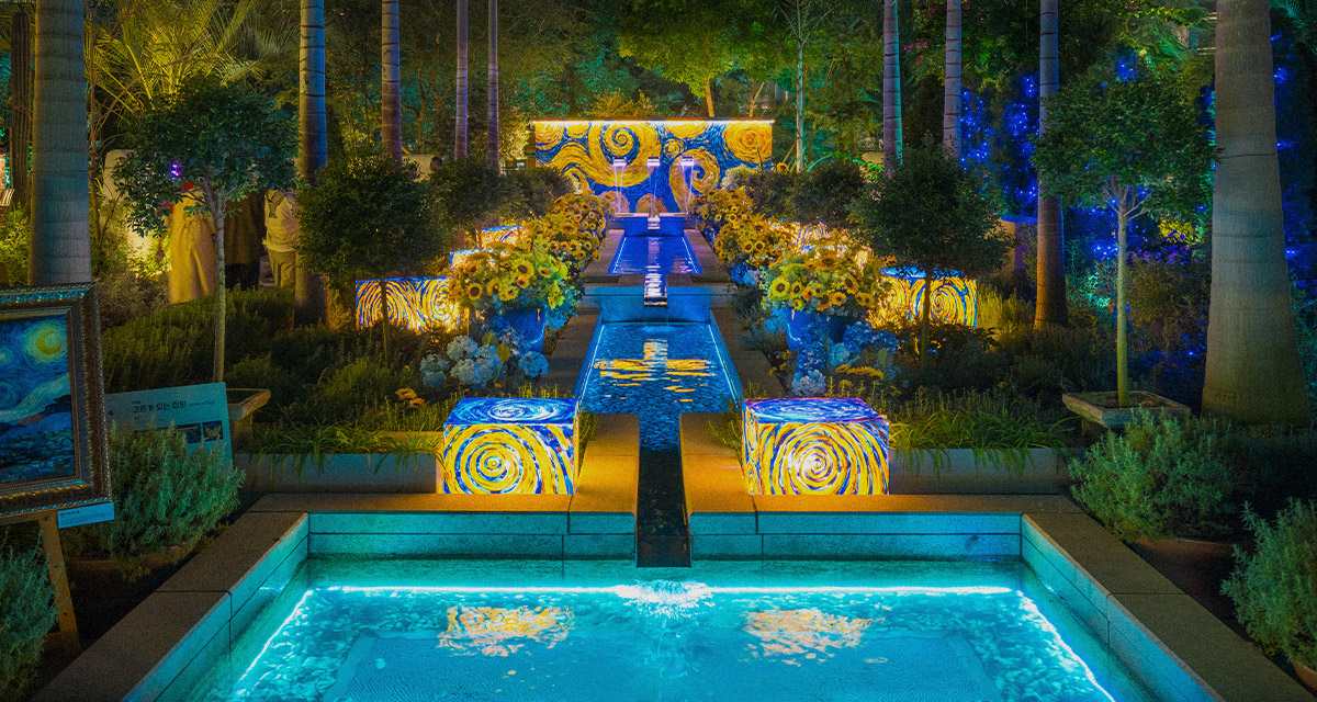 국립세종수목원은 낮에도 예쁘지만, 해마다 야간 개장을 진행할 정도로 밤이 아름다운 곳으로 정평이 나 있다. 그 이유는 국립수목원의 상징 사계절전시온실과 한국전통정원 안에 자리한 솔찬루가 밤에는 더 아름답게 빛나기 때문이다. 붓꽃의 꽃잎을 형상화해 만들어진 사계절전시온실에서는 지중해, 열대 식물과 어우러진 재미있는 전시를 볼 수 있어 더 매력적이다. 11월 2일까지 ‘한 여름밤의 고흐’ 전시가 진행되는데 식물 중간중간 고흐의 작품과 불빛이 어우러져 더욱 오묘한 분위기를 자아낸다. 게다가 특별전시온실에서 10월 26일까지 진행되는 우리가 즐기는 디저트 케이크, 아이스크림 속에는 어떤 식물들이 들어있는지 재미있게 풀어낸 전시, ‘스위트가든: 식물의 달콤한 유혹’은 아이들에게 인기다. 귀여운 캐릭터와 아이스크림, 케이크 모형이 식물과 함께 전시되어 있어서인지 유독 어린아이들이 많이 찾는다. 혹시 기간 내 두 전시를 보지 못했다고 해서 아쉬워 말자.