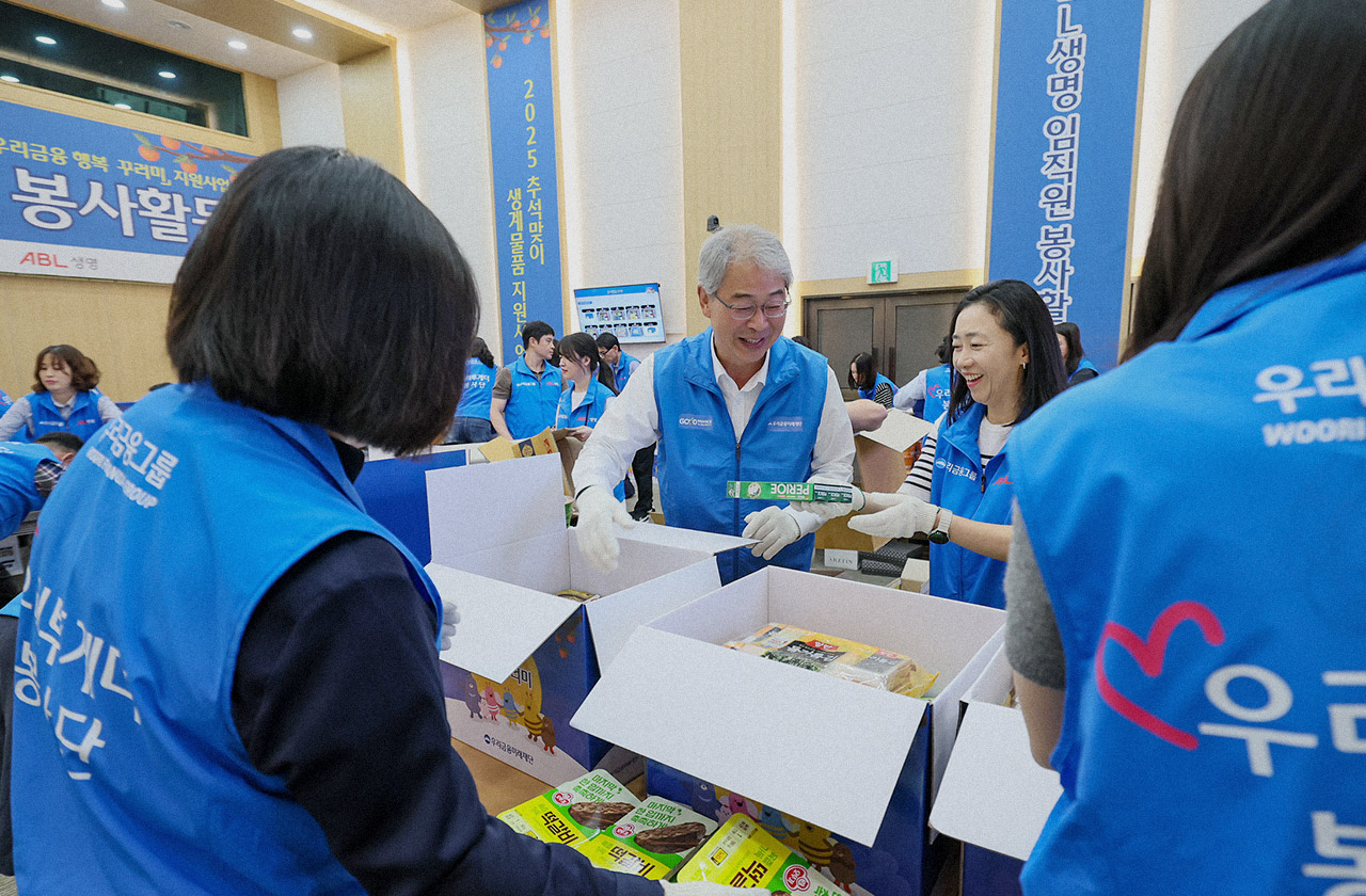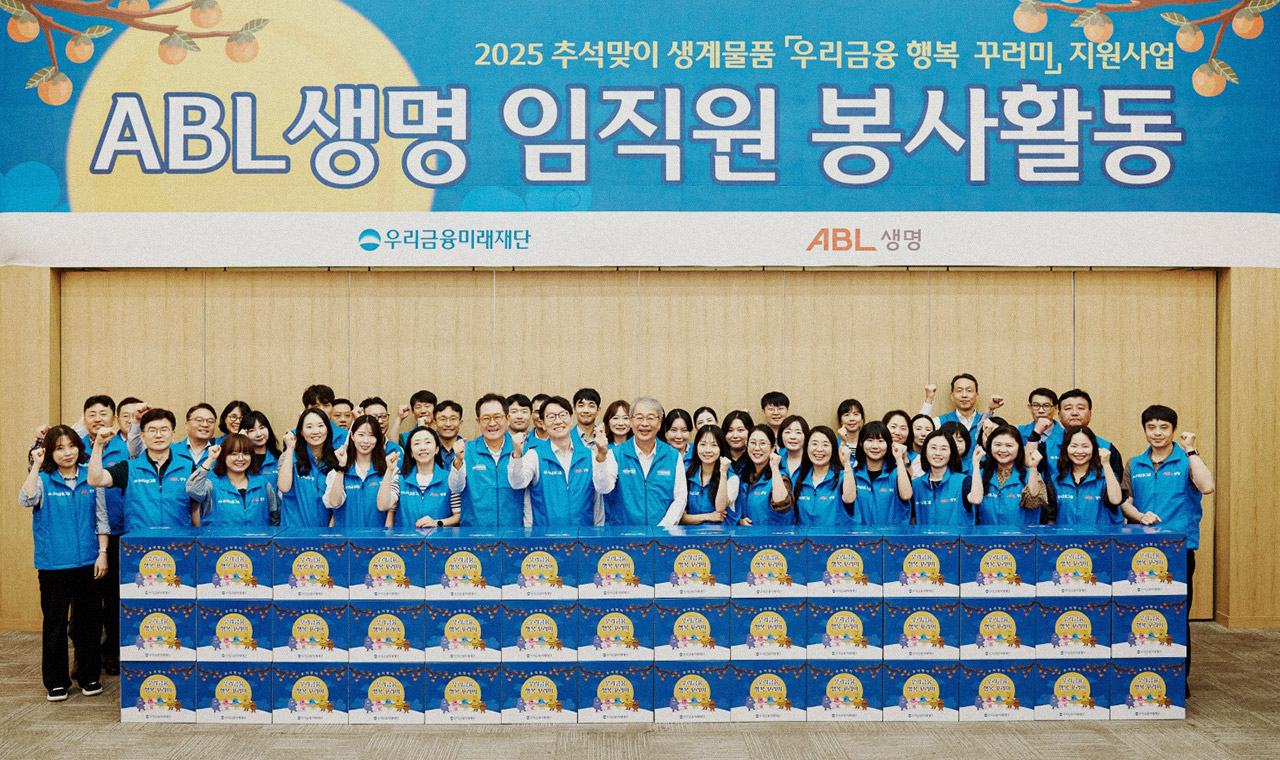 우리금융그룹 우리금융미래재단이 올해 그룹 계열사로 편입된 ABL생명과 손잡고 전국 조손가정 7,000세대에 추석의 풍성함을 전했다. 우리금융미래재단은 지난 9월 23일 ABL생명 임직원과 함께 명절 물품인 ‘우리금융 행복 꾸러미’를 직접 포장하는 봉사활동을 진행했다고 밝혔다. 이날 봉사활동은 우리금융미래재단이 진행하는 ‘추석맞이 조손가정 생계물품 지원사업’의 일환으로 진행되었다. ‘행복 꾸러미’는 △사골곰탕 △떡갈비 △영양죽 △버섯영양밥 등 명절 식료품과 함께 △조부모 영양제 △손자녀 종합비타민 △가족 위생물품 등 16종의 생필품으로 구성되었다. 봉사활동에 참여한 ABL생명 임직원은 ‘행복 꾸러미’를 포장하며 조손가정을 향한 ‘우리’의 따뜻한 관심과 응원의 마음도 함께 담았다. 지원물품은 전국에 있는 복지기관을 통해 7,000세대의 저소득 조손가정에게 전달될 예정이다.