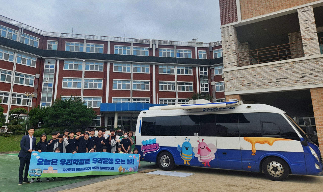 우리은행은 지난 9월 18일 충북 청주 수곡중학교에서 이동점포 ‘위버스(WeBUS)’를 활용한 ‘찾아가는 금융체험교실’을 진행했다고 밝혔다. 이번 프로그램은 전국 초·중·고등학교 청소년을 위한 금융교육을 제공하는 우리은행의 ‘1사 1교 금융교육’의 일환으로 진행됐다. 이날 우리은행은 오전 10시부터 12시까지 2시간 동안 수곡중학교 학생 30명에게 △저축·용돈 관리 △신용과 부채 △금융사기 예방 등 실생활 중심 금융교육을 진행했다. 또한, 이동점포 ‘위버스(WeBUS)’를 활용해 학생들이 실제 은행 업무를 체험해 볼 수 있는 시간도 마련했다. 수곡중학교 학생들은 “뉴스에서만 보던 금융사기 예방법을 직접 배우니 실제 생활에 도움이 됐다”며 긍정적인 반응을 보였다.