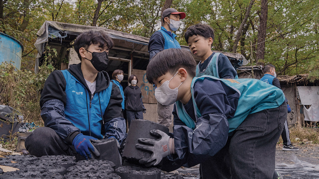 지난 11월 8일 토요일, WOORI 가족봉사단이 서울 구룡마을을 찾았다. 이웃들이 따뜻한 겨울을 지내는 데 보탬이 되길 바라며 손수 연탄 나르기에 나선 것이다. 주말 늦잠 대신 나눔 실천을 선택한 가족들이 하나둘 모여들자 고요한 동네에 활기가 돌기 시작한다.