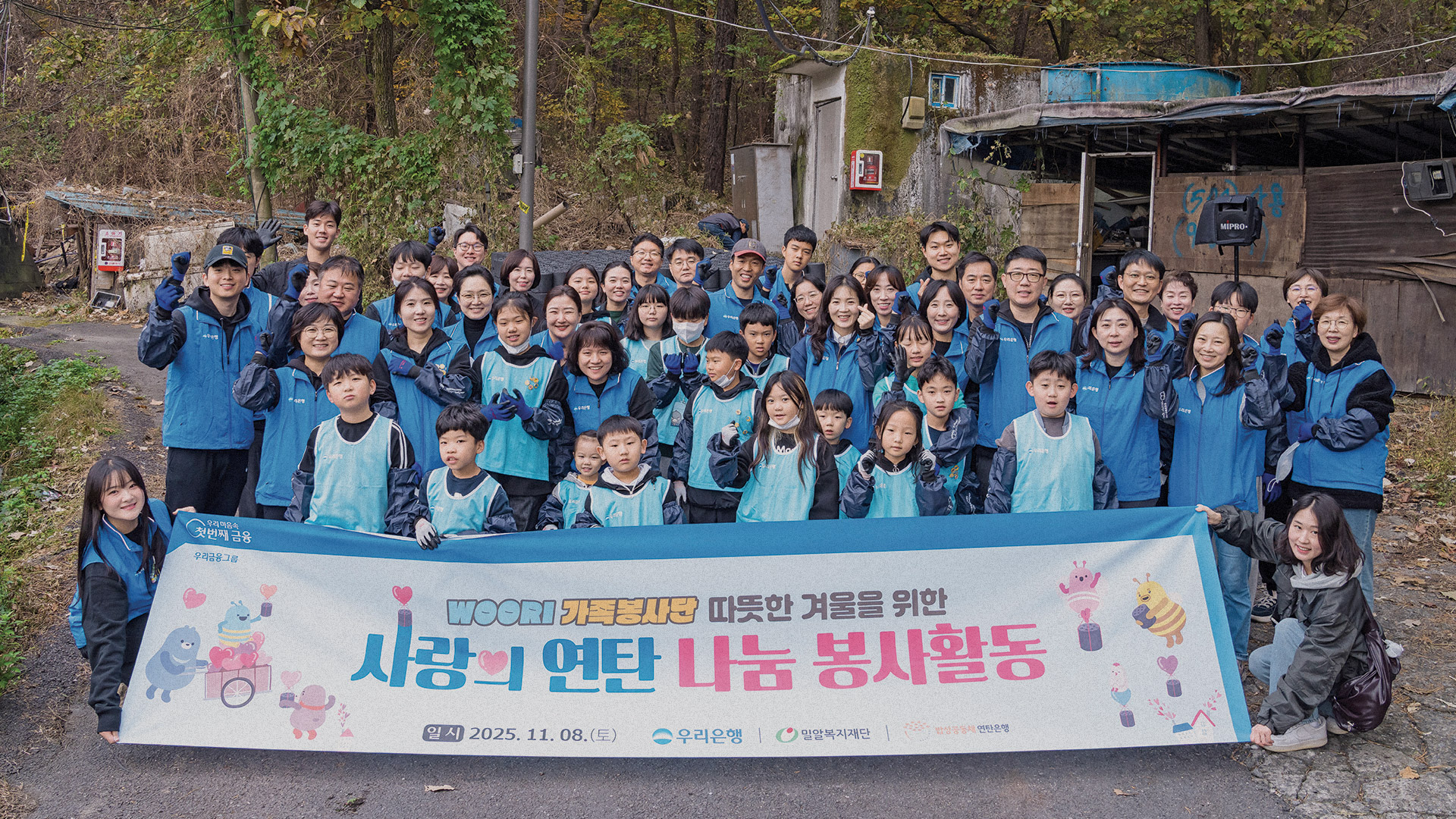 소외된 이웃이 겨울을 따스하게 보내길 바라는 진심을 담아 활약한 WOORI 가족봉사단. 이들이 전달한 연탄은 혹독한 추위의 한겨울을 지나 새해 봄까지 사용될 예정이다. 온기와 정이 길목 곳곳에 스며들었기에 이웃들이 포근한 봄날 같은 하루하루를 보내지 않을까. 브랜드전략부는 앞으로도 기업의 사회적 책임을 실천하는 동시에 지속 가능한 미래 가치를 창출할 것이다. 2026년에도 나눔 행보로 지역사회와 이웃 사이사이를 크나큰 행복을 채워주길, ‘우리 모두 행복한 세상 만들기’를 실현하길 기대한다.