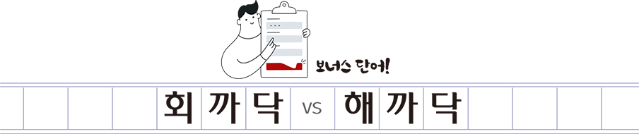 갑자기 정신이 이상해지는 경우를 두고 ‘회까닥해서 그래’라고 말하곤 합니다. 주로 갑작스러운 심리변화나 감정을 표현할 때 사용하는데요. 회까닥은 놀라거나 흥분한 상태에서 쓰는 의성어이자 의태어 ‘회(돌다)’와 ‘까닥(작은 움직임)’을 합친 말입니다. 이렇게 이해하면 쉽죠? ‘해까닥’은 ‘회까닥’을 들리는 대로 표현하는 과정에서 잘못쓰인 표현이라는 사실! 알아두세요.