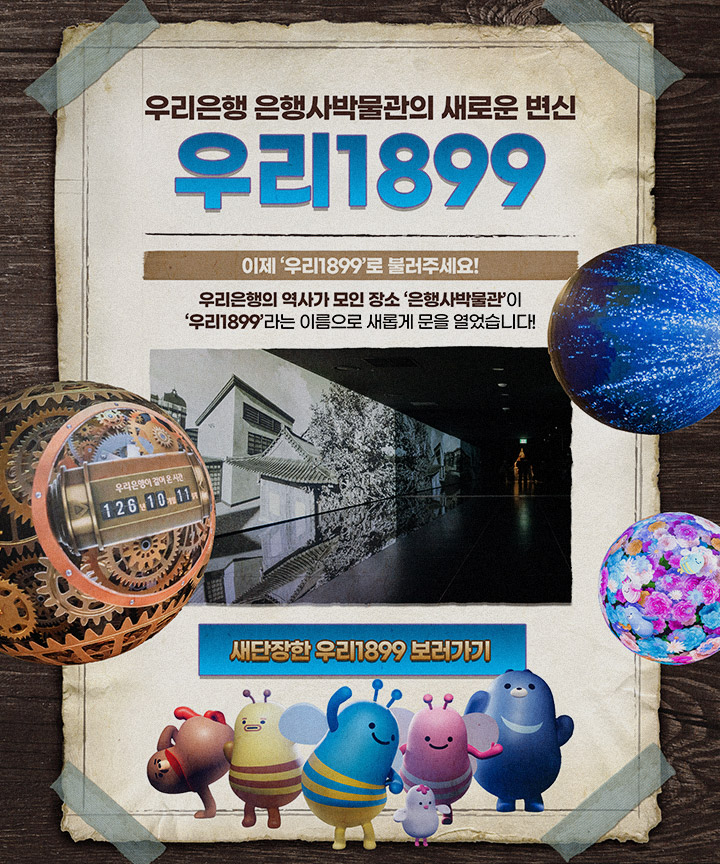 2004년 개관해 우리은행의 역사를 고스란히 지켜온 ‘우리은행 은행사박물관’이 21년 만에 리노베이션을 마치고 ‘우리1899’라는 이름으로 새로운 시작을 알렸다. 126년의 금융 역사를 현대적으로 재해석한 전시 공간 우리1899가 문을 여는 날, 우리 모두 함께 모여 힘찬 시작을 축하했다.