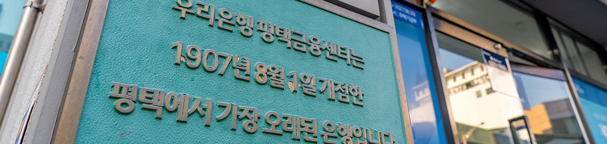 경기도 평택시 원평로 거리에는 특별한 동판이 새겨져 있다. 우리은행 평택금융센터의 옛터를 알리는 동판으로 119년의 역사를 함축해 놓았다. 1907년 8월 1일 개점한 한성공동창고는 경부선 철도 개통으로 평택이 교통의 요충지로 거듭난 당시 상인들의 자금을 보호하는 역할을 했다. 1912년 대한천일은행에 흡수 합병된 후, 조선상업은행으로 변경됐다. 해방 후 한국상업은행 평택지점으로 개칭했으며, 그 이후 6·25전쟁 때 큰 피해를 입고 1954년 비전동으로 이전했다. 바로 지금의 우리은행 평택금융센터다. 민족의 역사와 궤를 함께한 평택금융센터는 언제나 그 자리에 평택시민의 이웃처럼 자리하는 중이다.