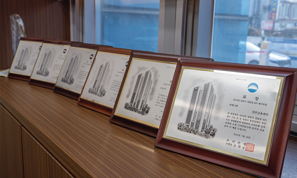 “관내에서 가장 오래된 점포인 만큼 역사도 탄탄하고 규모도 큽니다. 또 전주금융센터가 모점 업무를 담당하고 있는데요. 다른 점포의 업무를 지원하는 역할을 합니다. 주변 지점들이 ‘우리 선에서 안 되는 건 모점에서 해결한다’는 신뢰가 형성되어 있으므로 모든 직원이 큰 책임감과 자부심으로 임합니다.”