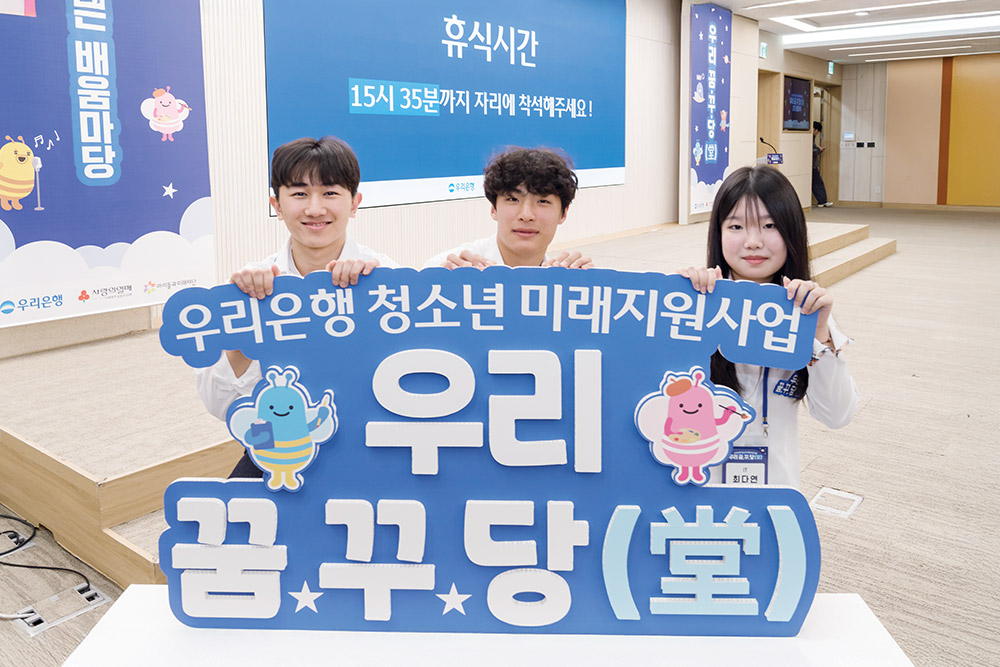 “우리꿈·꾸·당(堂)은 우리은행의 청소년 미래지원사업입니다. 재능이 있지만 가정환경 등의 이유로 지속적인 재능 계발이 어려운 학생들을 돕고 있어요. 장학금 지원과 더불어 멘토링, 역량 강화 활동, 네트워킹 등의 프로그램을 함께 운영하며 단순한 지원에 그치지 않고 개개인의 성장을 돕는 것이 특징입니다.”
