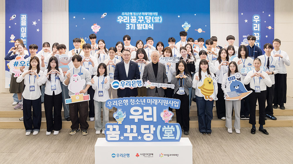 우리은행은 ‘아이들과미래재단’과 우리 꿈·꾸·당(堂) 기획·운영을 함께하고 있다. 재단의 현장 경험과 전문성을 바탕으로 참여자 선발 및 관리, 교육·멘토링 프로그램 설계, 성과 관리까지 체계적으로 운영하고, 우리은행은 사업 방향성과 브랜드 철학을 담아 지원과 협력을 이어가는 중이다.